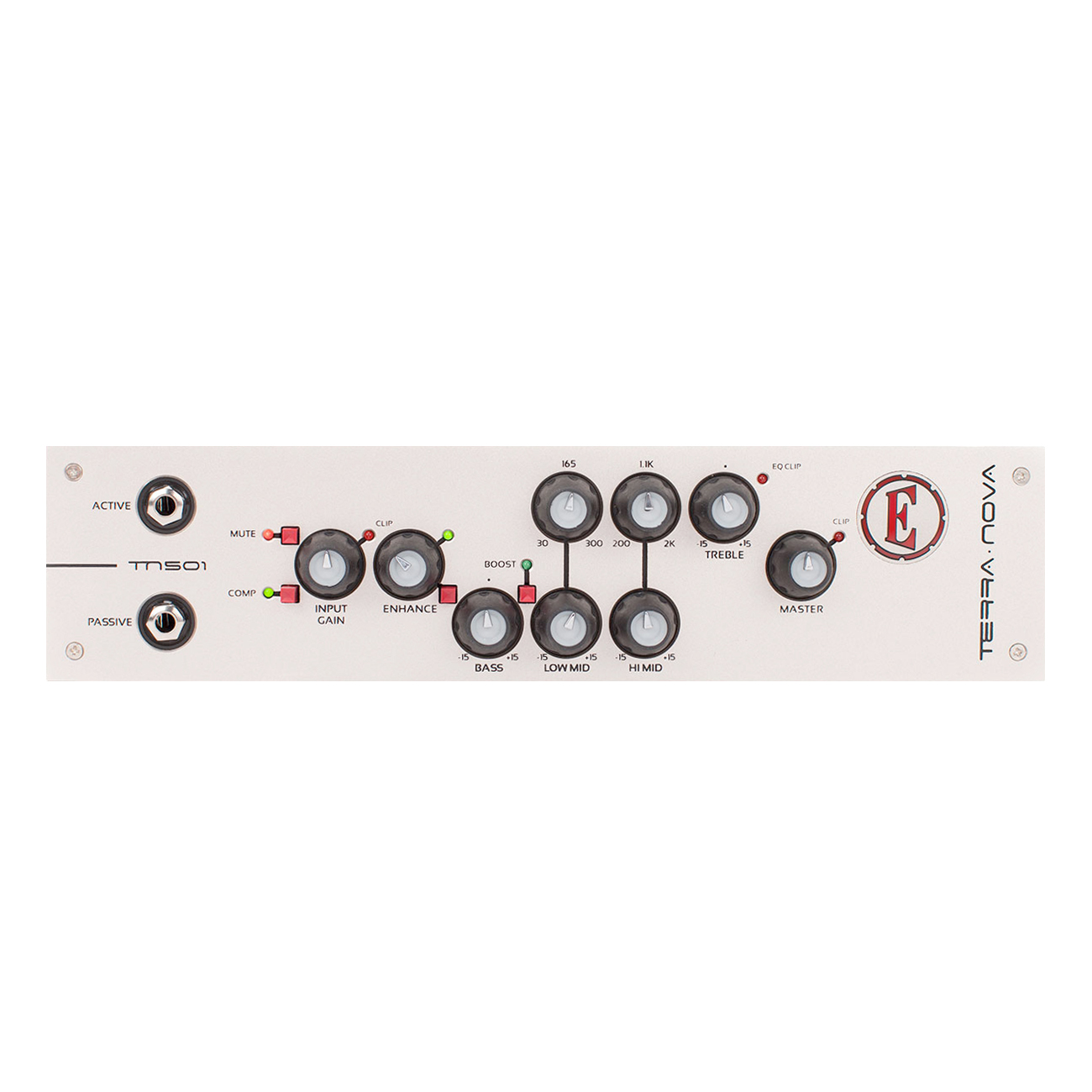 - 4-band EQ with semi parametric mid controls, Enhance control & Bass Boost