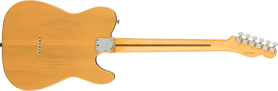 The new Telecaster bridge sports compensated “bullet” brass barrel saddles for comfort, accurate intonation and vintage-informed tone. Strings can be top-loaded for reduced tension, resulting in a mellower twang and springy attack that’s perfect for rock n roll.