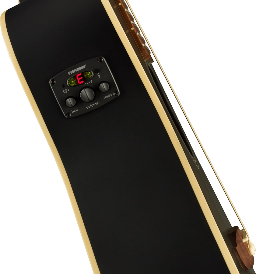 A Fishman pickup/preamp system adds peerless amplified performance with a variety of onboard controls to your acoustic instrument without compromising its pure, rich and resonant tone. The built-in tuner is conveniently placed right where you can see it, making it easy to keep your intonation right on the money.