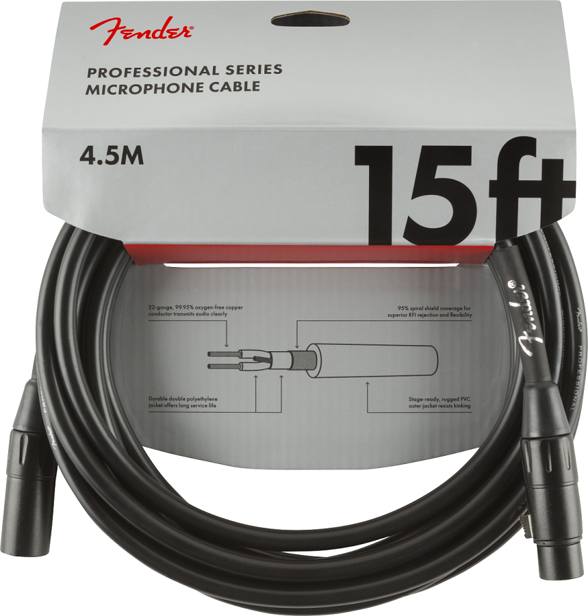 Fender Professional Microfoonkabel XLR - XLR Zwart 4,5 Meter