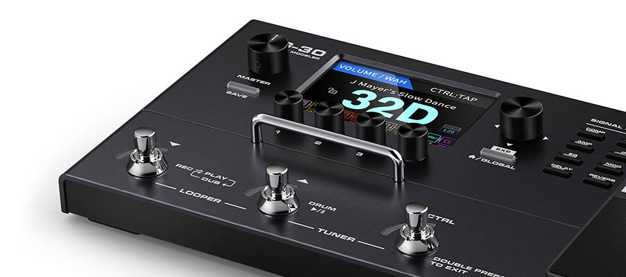 The 5-way encoder navigates lets you for quick editing, signal block routing, jack setting, and more. Signal block indicator presents current status, and helps you quickly engage/bypass or edit related effects.